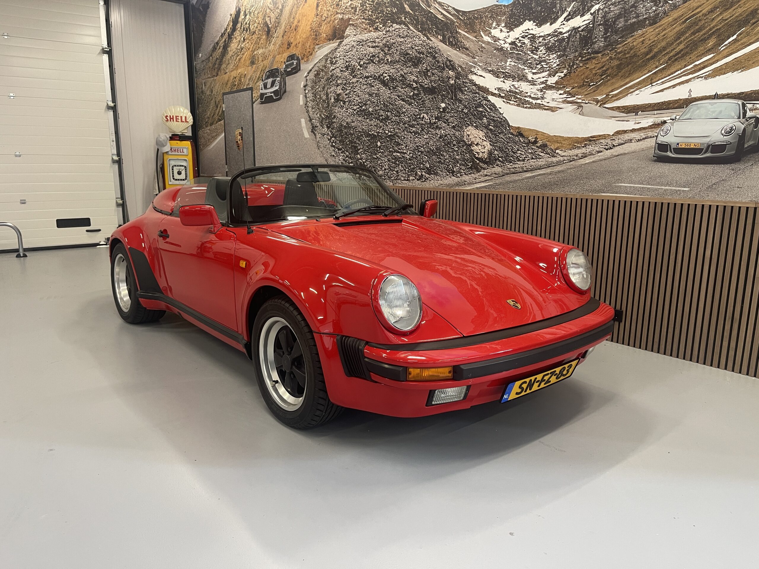De Porsche 911 3.2 Speedster uit 1989 is een bijzondere en iconische sportwagen die behoort tot de legendarische 911-serie van Porsche. De Speedster-varianten van de 911 staan bekend om hun minimalistische ontwerp, lage voorruit en tweezitsconfiguratie, waardoor ze een klassieke roadster-esthetiek hebben. De 3.2 Speedster was het vlaggenschip van de G-serie. De meest open versie van de 911 met de optiecode M503, had de brede wielkasten die kenmerkend waren voor de Turbo Look. Ook het chassis en het remsysteem kwamen van de 911 Turbo. De 3.2 verwijst naar de motorinhoud van 3.2 liter van de zescilinder boxermotor achterin de auto. Deze luchtgekoelde motor produceerde 231 pk. Dankzij de krachtige motor kon de Speedster indrukwekkende prestaties leveren voor zijn tijd. De auto kon in ongeveer 6 seconden accelereren van 0 naar 100 km/u en had een topsnelheid van ongeveer 240 km/u.