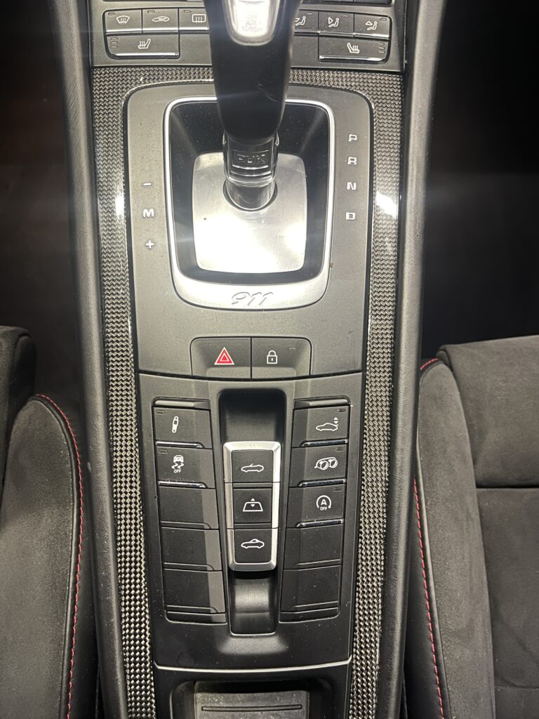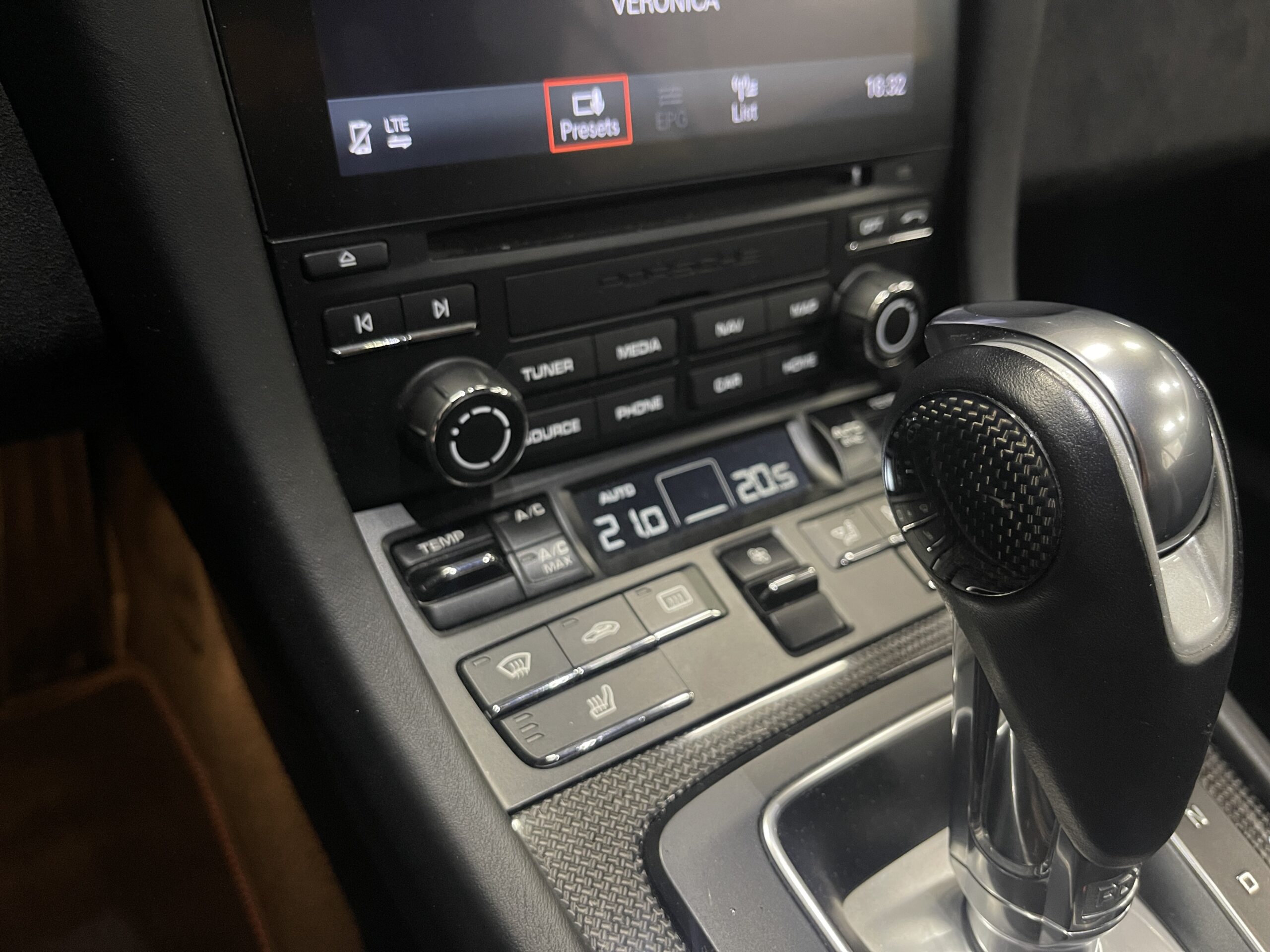 De 991.2 onderscheid zich in het interieur op diverse manieren ten op zicht van de MK1. De PCM is voorzien van Apple CarPlay en de sport en sport + knop zit op het stuur. Deze GTS heeft de geen alcantara delen, de sierlijsten in aluminium staan goed. De 18 voudige adaptieve stoelen zorgen voor zeer goede steun waarbij u na een lange rit fris uitstapt.