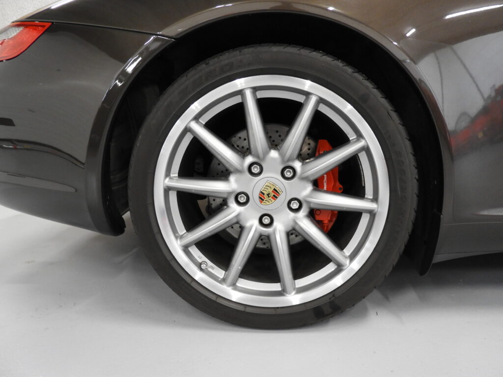 Schitterende Porsche 997 S in de luxe kleur Macadamia Metalic. Het exterieur is kenmerkend voor de 997-generatie, met zijn klassieke 911-silhouet en sportieve details.De 997 generatie is tussen 2004 en 2012 geleverd. De klassieke ronde en kenmerkende 911 koplampen zijn weer terug. De nieuwe 997 is eigenlijk de modernere en verbeterde versie van de 996. Gedurende deze 8 jaren zijn er maar liefst 15 verschillende uitvoeringen uitgebracht. De mooie zeldzame kleur van deze 911 is buiten de voorklep volledig eerste. De lak zelf is als nieuw en vertoont nauwelijks tot geen beschadigingen. Ook de velgen zijn onberispelijk.